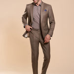 Costumul Melitene, într-o nuanță discretă de bej (cafe au lait), reprezintă esența eleganței simple. Modelul uni și lâna super fină fac din acest costum o alegere ideală pentru aparițiile notabile, unde subtilitatea și rafinamentul sunt la ordinea zilei. Melitene emană calm și încredere, fiind perfect pentru bărbatul care apreciază stilul clasic, dar distins.