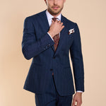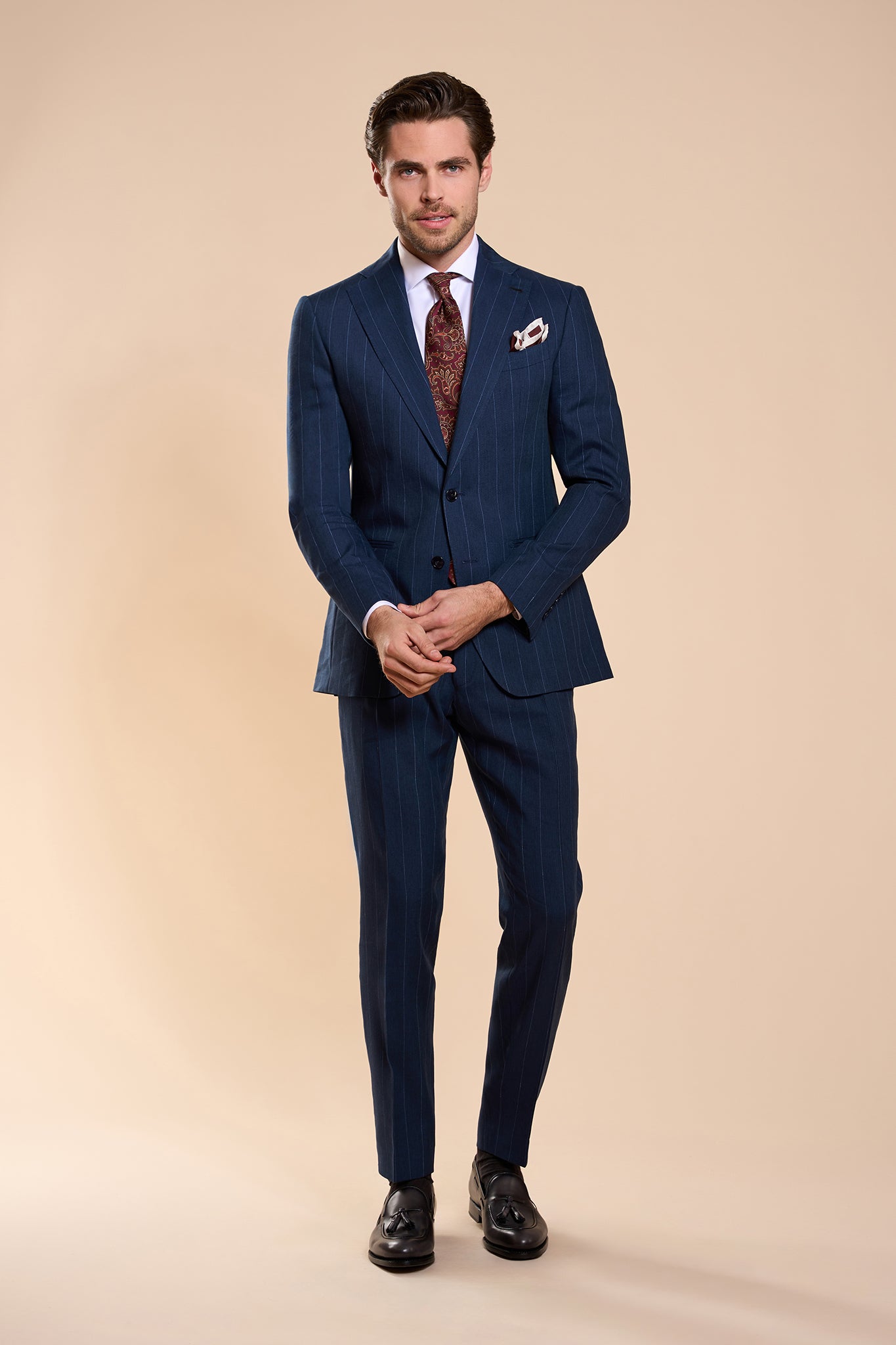 Costumul Nikopolis se remarcă printr-o nuanță clasică de bleumarin Navy și un model elegant de dungi. Țesătura mixtă din lână și in oferă atât respirabilitate, cât și un aspect structurat, fiind ideal pentru sezonul cald. Nikopolis este costumul perfect pentru cei care doresc să îmbine tradiția cu confortul modern, oferind un look impunător și rafinat.