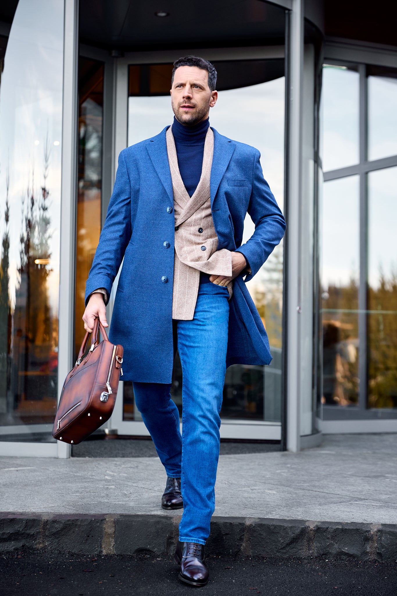 Azurro is the coat that perfectly combines the essence of modern elegance with the spirit of a man always on the move.