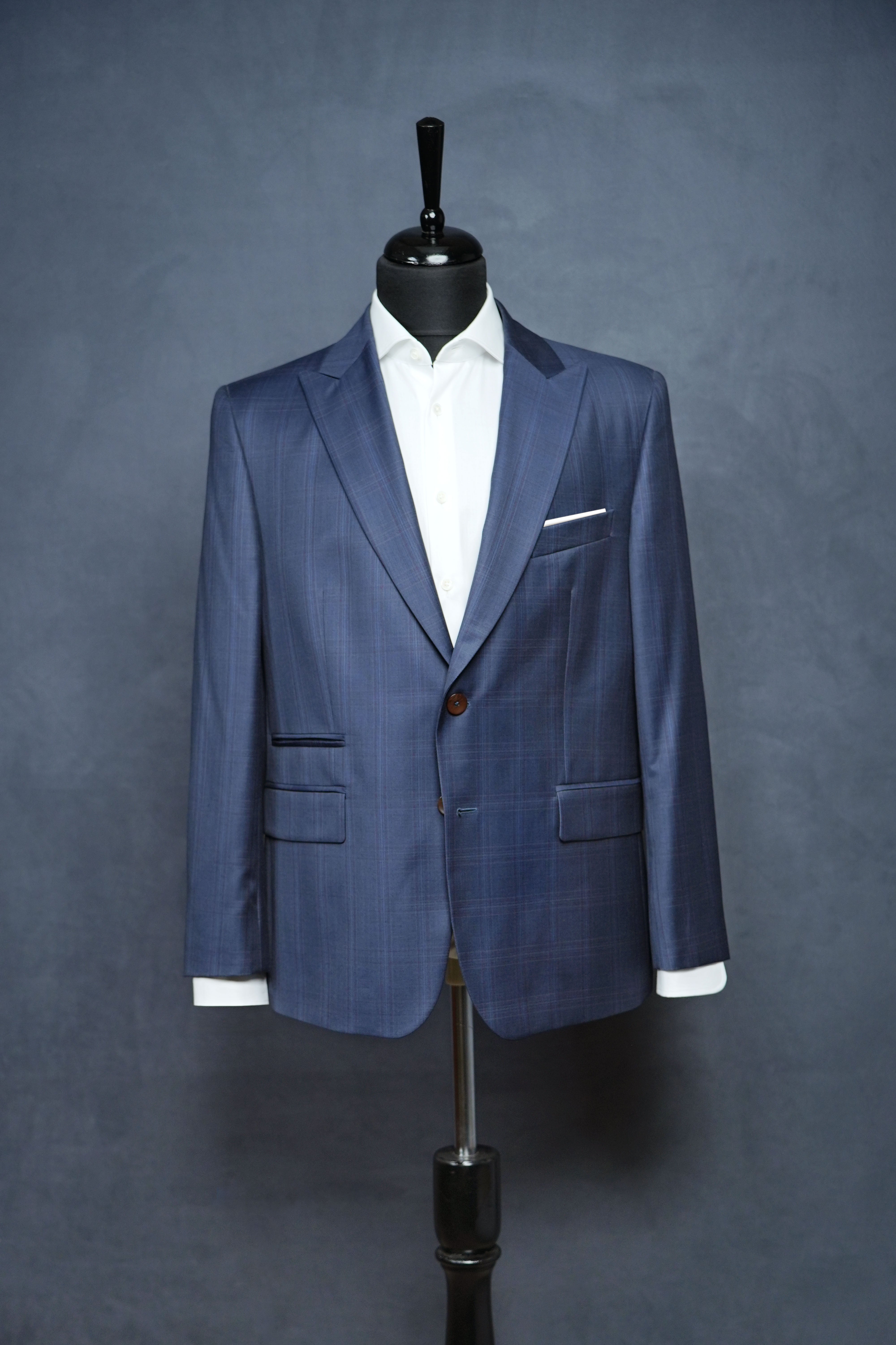 The pointed lapel adds a touch of authority and sophistication, while the deep shade of blue in fine checks gives its versatility and character.