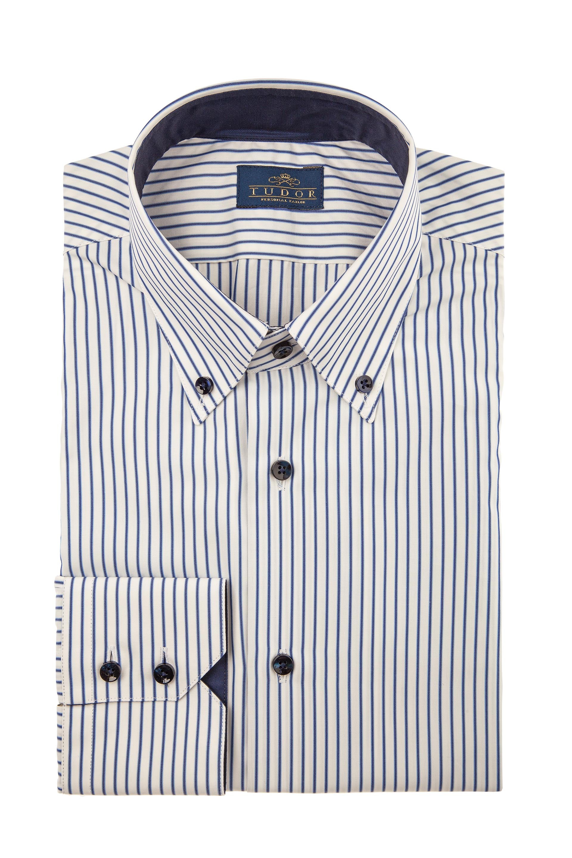 Cămașă business-casual, în dungi, din bumbac 100%, cu detalii bleumarin.