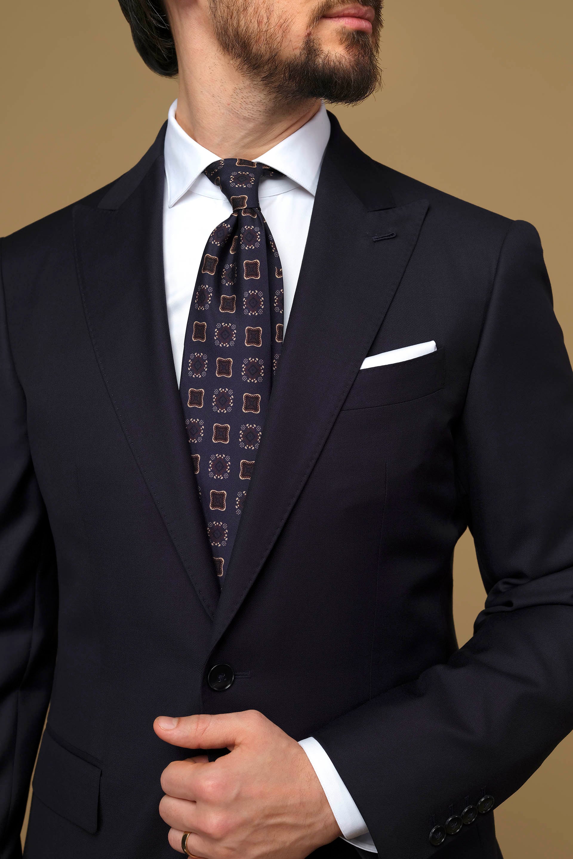 Lâna fină, moale și delicată la atingere, asigură o respirabilitate excelentă, ceea ce îl face ideal pentru zilele lungi de la birou sau întâlnirile importante. Fiecare detaliu al acestui costum este atent conceput pentru a reflecta nu doar un stil modern și sofisticat, ci și o versatilitate care îți permite să treci cu ușurință de la o zi agitată de afaceri la o cină elegantă.