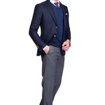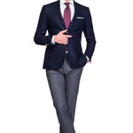 Ținuta Felix are ca piesă principală un blazer clasic bleumarin potrivit sezonului de toamnă-iarnă.