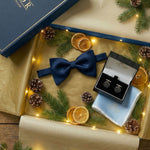 Cutia are un preț special în luna cadourilor. Și este customizabilă, cu nuanța dorită pentru papion și batistă, și modelul preferat de butoni (din cele disponibile în stoc).