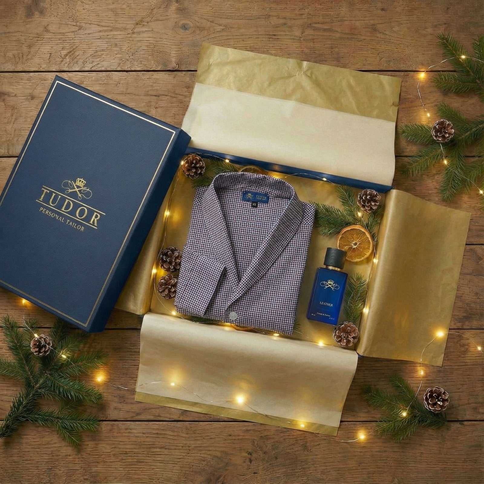 Aceasta este una dintre ele, și include o pijama din bumbac premium, care îi oferă confort și eleganță în același timp, și o esență de parfum Tudor Tailor, care îmbracă pielea ca o țesătură fină de cașmir, cu note luminoase și calde.