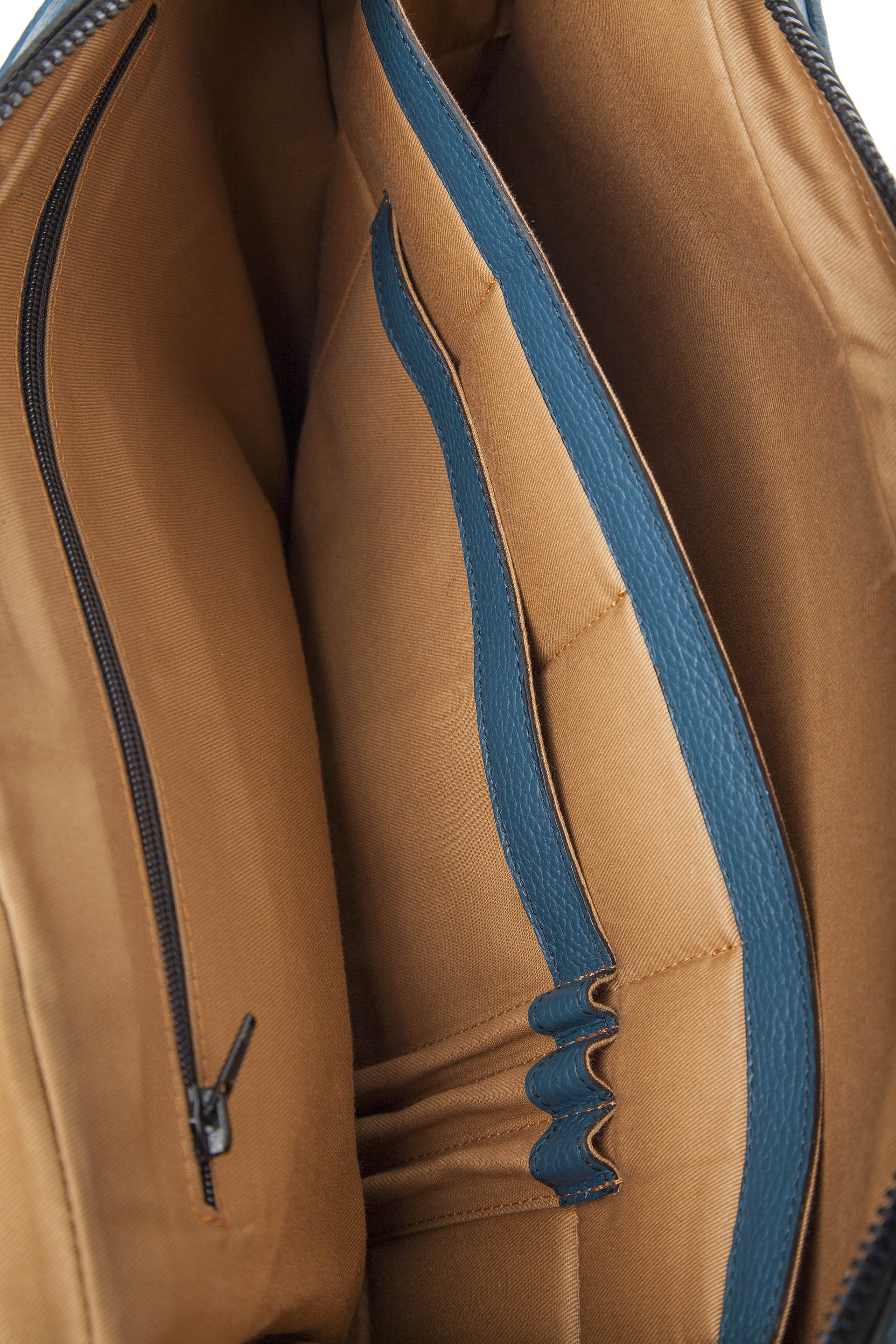 Geanta este compartimentata astfel: pe exterior fata cu un buzunar mare cu inchizator magnetic, pe exterior spate cu un buzunar mic iar pe interior cu un buzunar cu fermoar, buzunar special pentru laptop si suport pentru pixuri si carti de vizita.