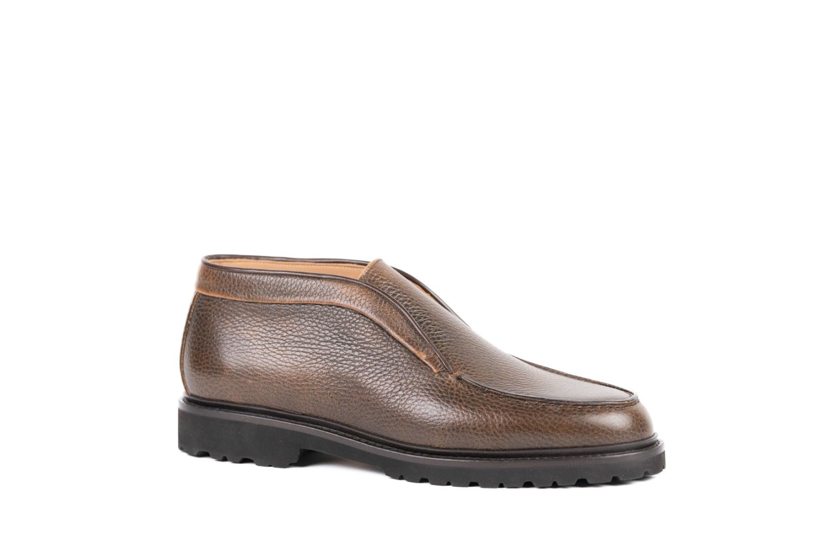 Realizate din piele de vițel de cea mai bună calitate, într-o nuanță rafinată de coniac, aceste ghete impresionează prin textura naturală a pielii și liniile curate, atent finisate.