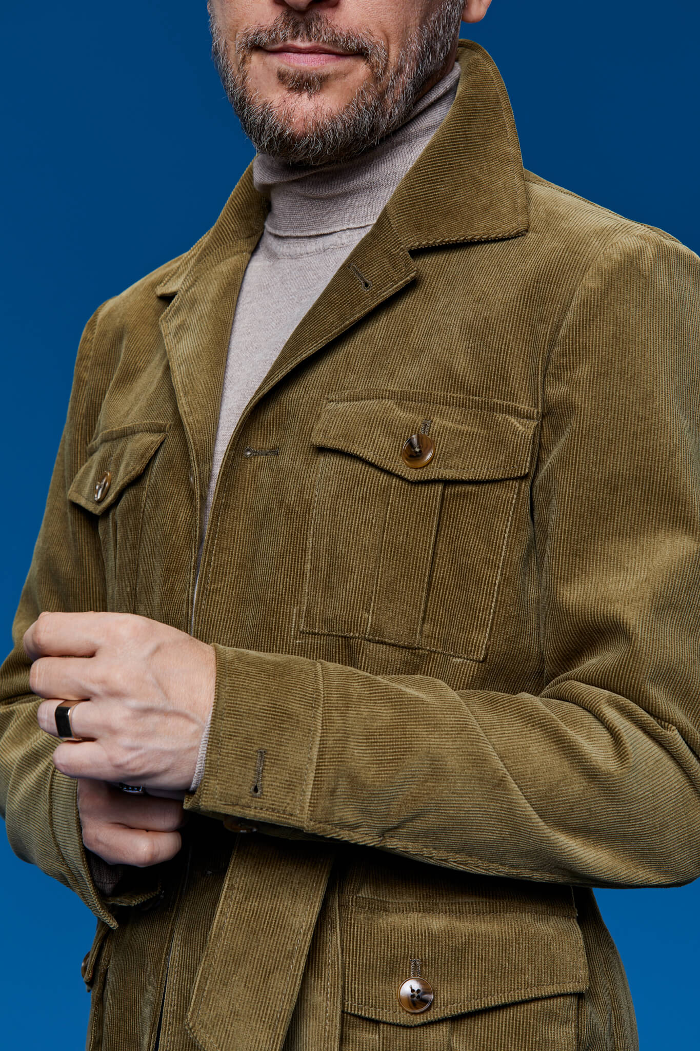O abordare fresh a croitoriei clasice - jacheta safari din velur aduce o notă de noblețe prin strălucirea catifelată a țesăturii, pe o construcție utilitară, practică și versatilă.