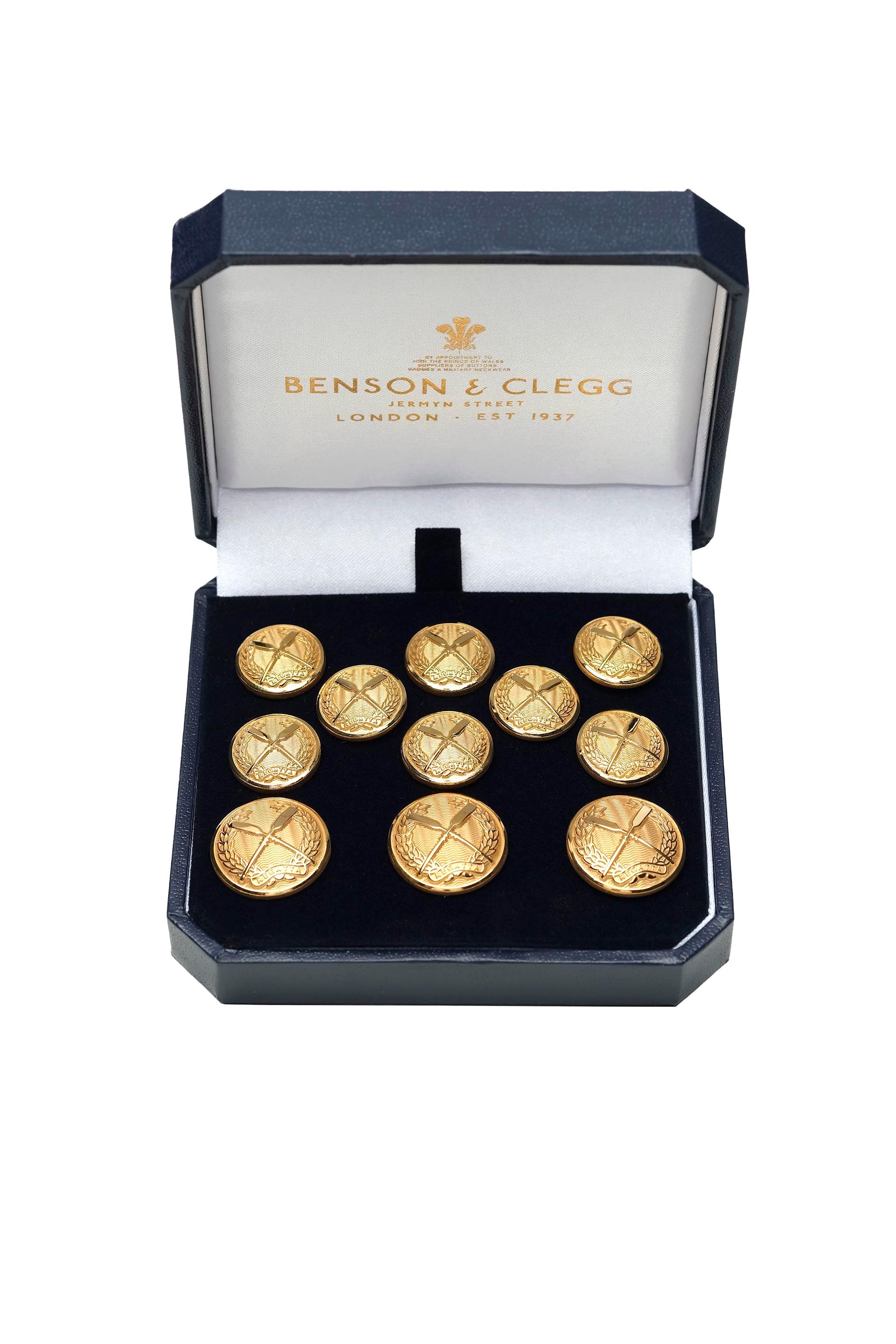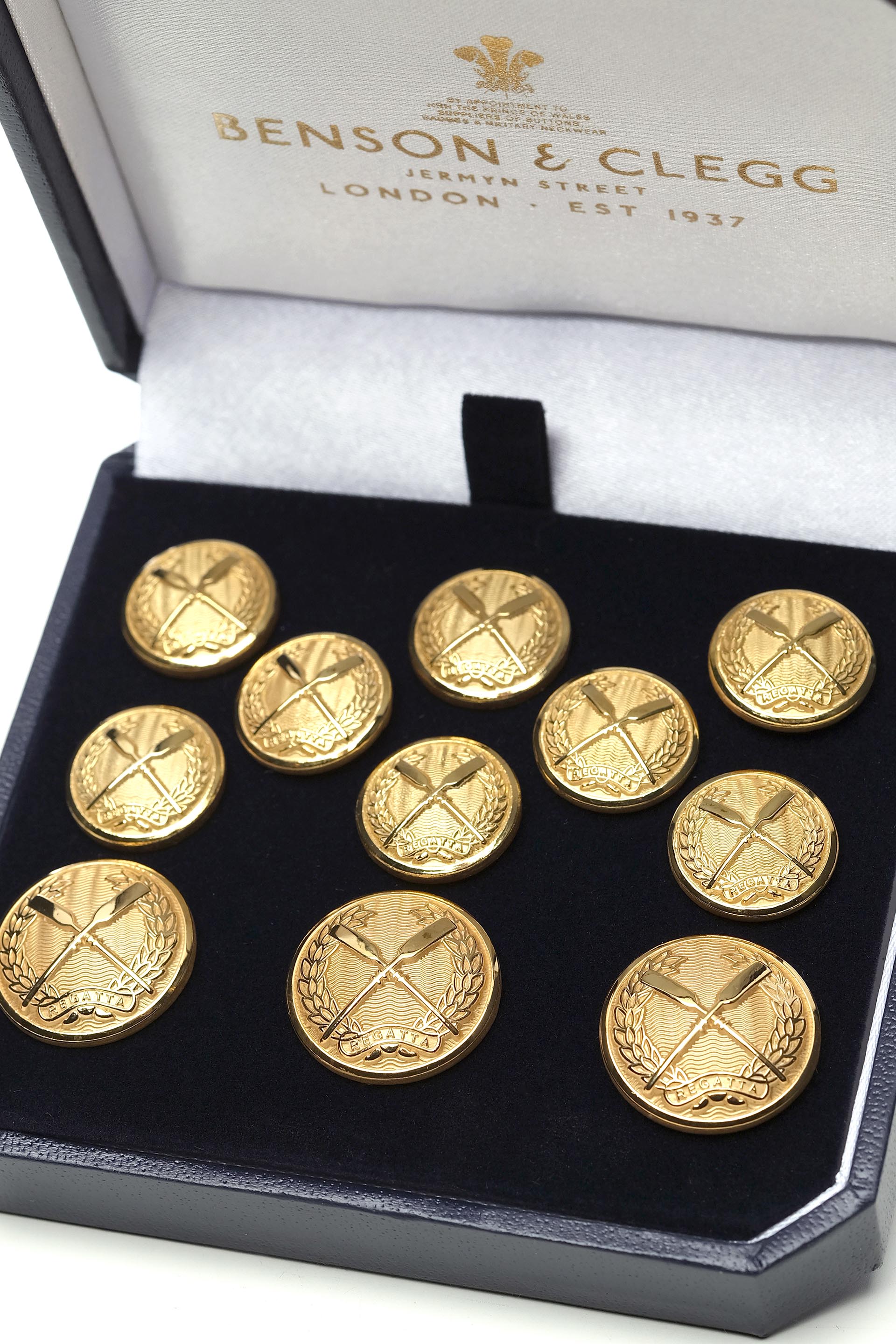 O pereche de nasturi stilați și rafinați, ideali pentru un sacou clasic de inspirație maritimă. Setul conține nasturi fabricați în Anglia prin procese tradiționale britanice provenite din secolul al 18-lea.