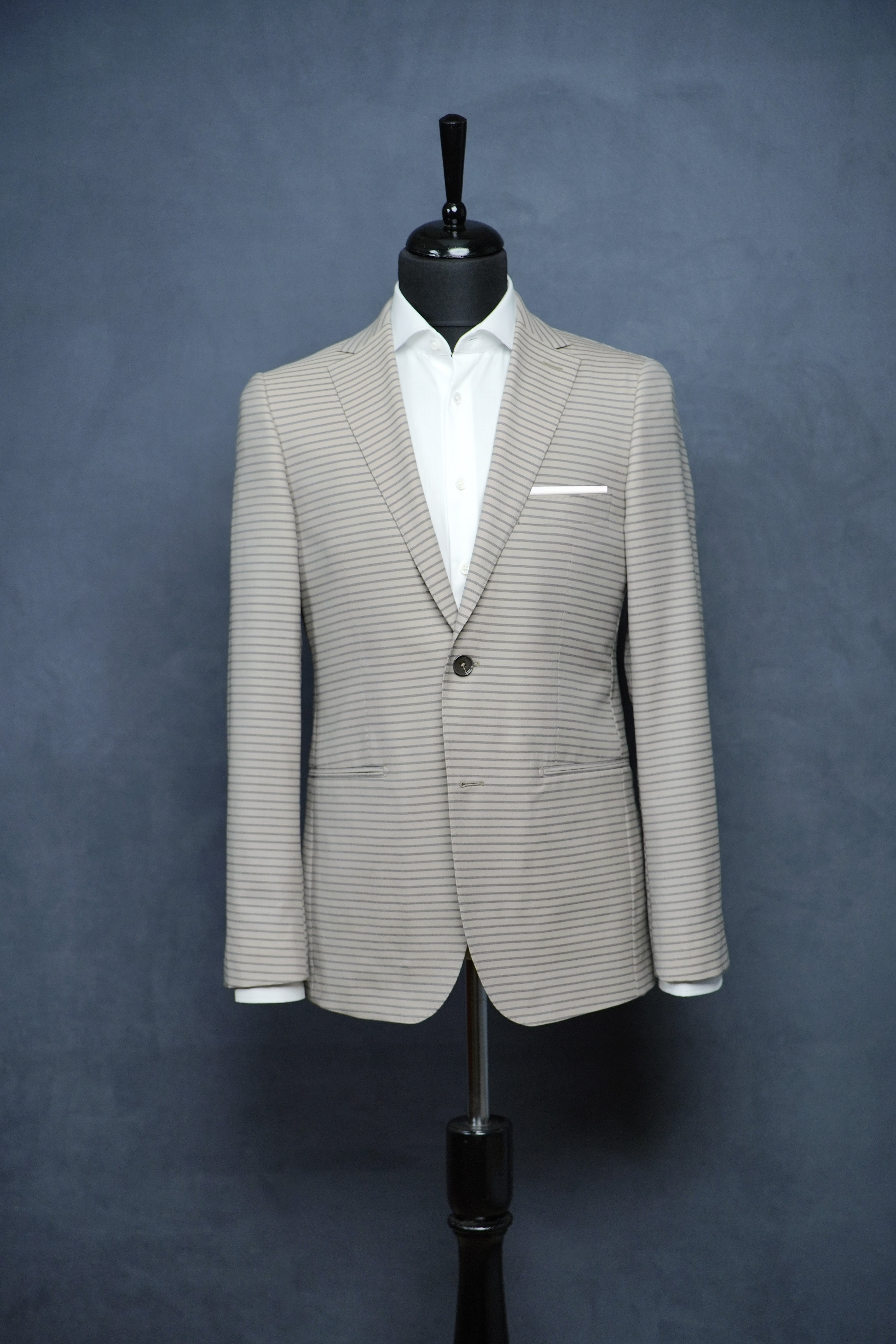 Modelul cu dungi fine orizontale adaugă profunzime și personalitate unei piese clasice, iar croiala atent finisată oferă o siluetă clară și echilibrată.